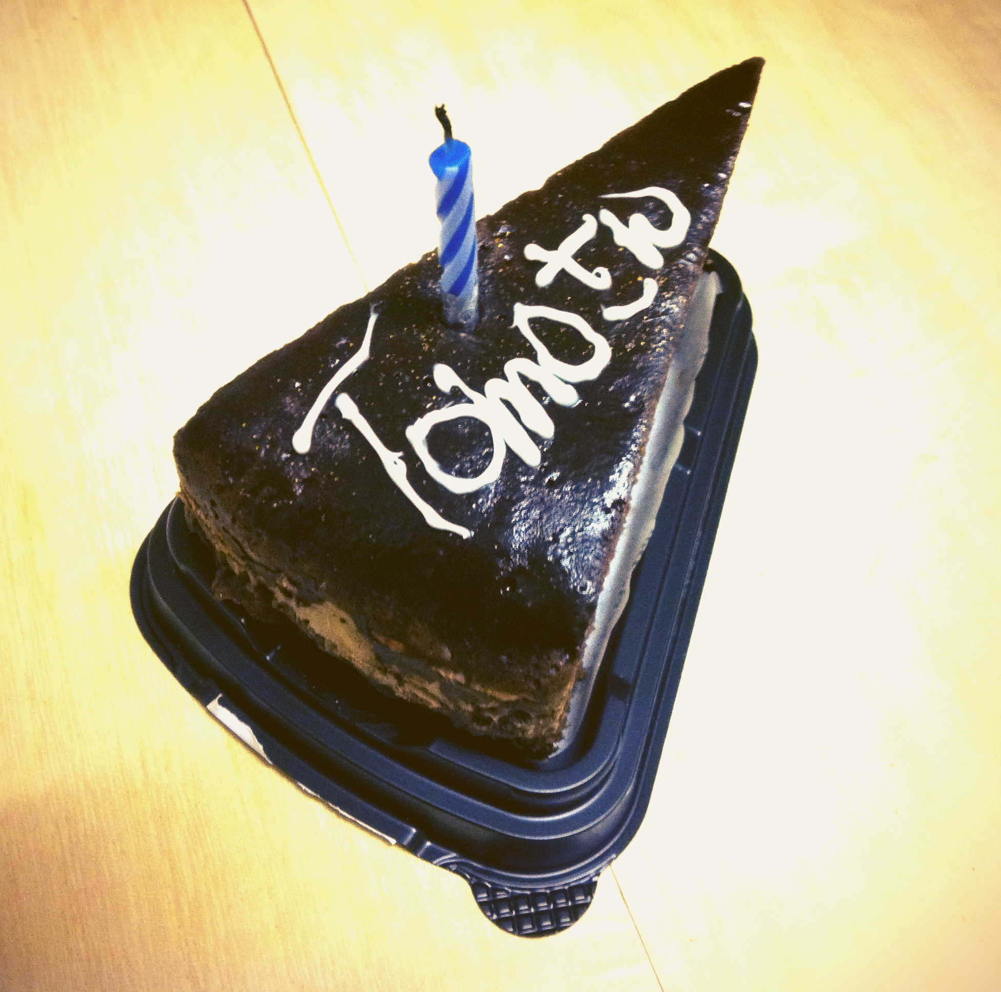歌声とともに登場したのは、ロウソクが1本立てられたチョコレートケーキ(コンビニ産)でした!